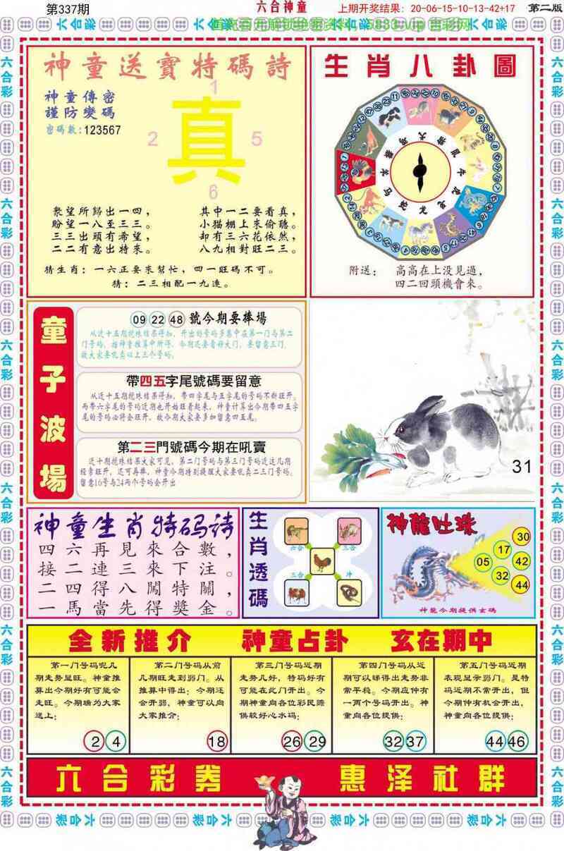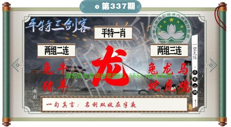 | 337期:【三行中特】【木火水】开:鸡09中 |